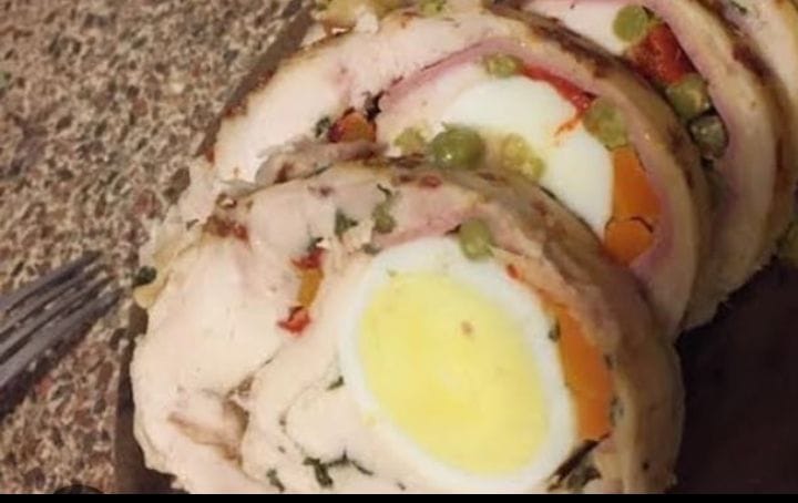 Pollo arrollado c/ salsa y fritas