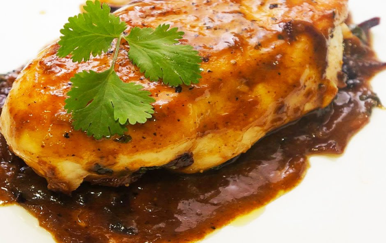 Pollo a la cerveza con miel c/ papas y batatas al horno