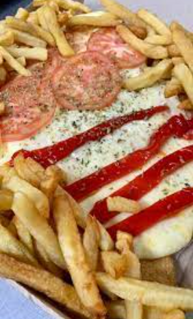 Milanesa de pollo con salsa, muzzarela, jamon, tomate y morron