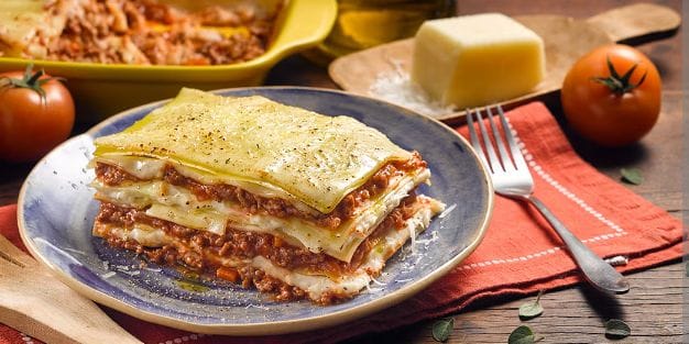 Lasagna mixta con carne y verdura.