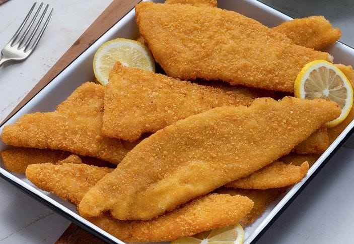Merluza apanada c/brócoli, cherry y calabaza