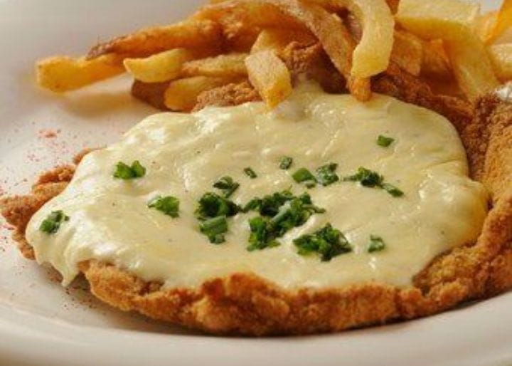 Milanesa de pollo a la suiza c/ fritas