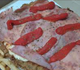 milanesa de pollo con muzza, salsa, Jamon y Morron