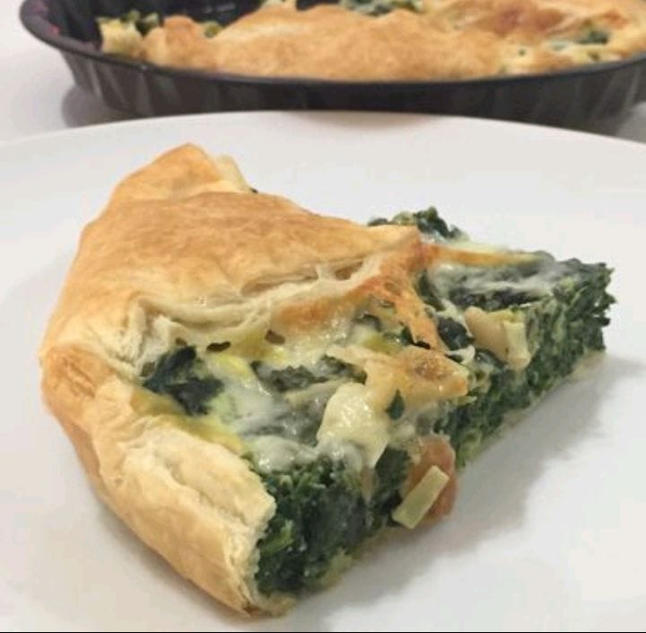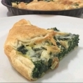 masa de tarta, muzza, queso crema, huevo, espinaca, ceb carameliza, queso azul, sal y pimienta