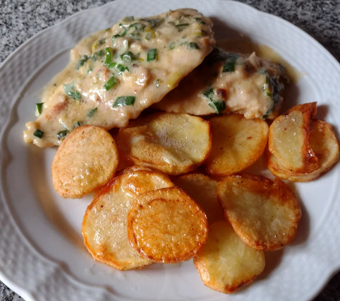 Pollo c/ papas Españolas al verdeo