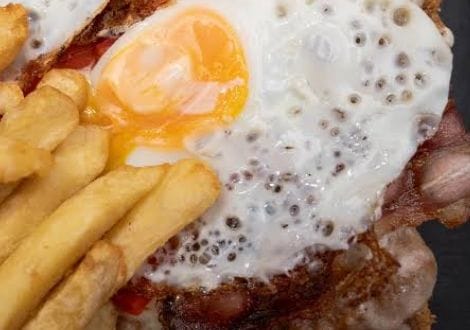 Milanesa de pollo c/Panceta-Huevo y Papas Cubo