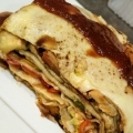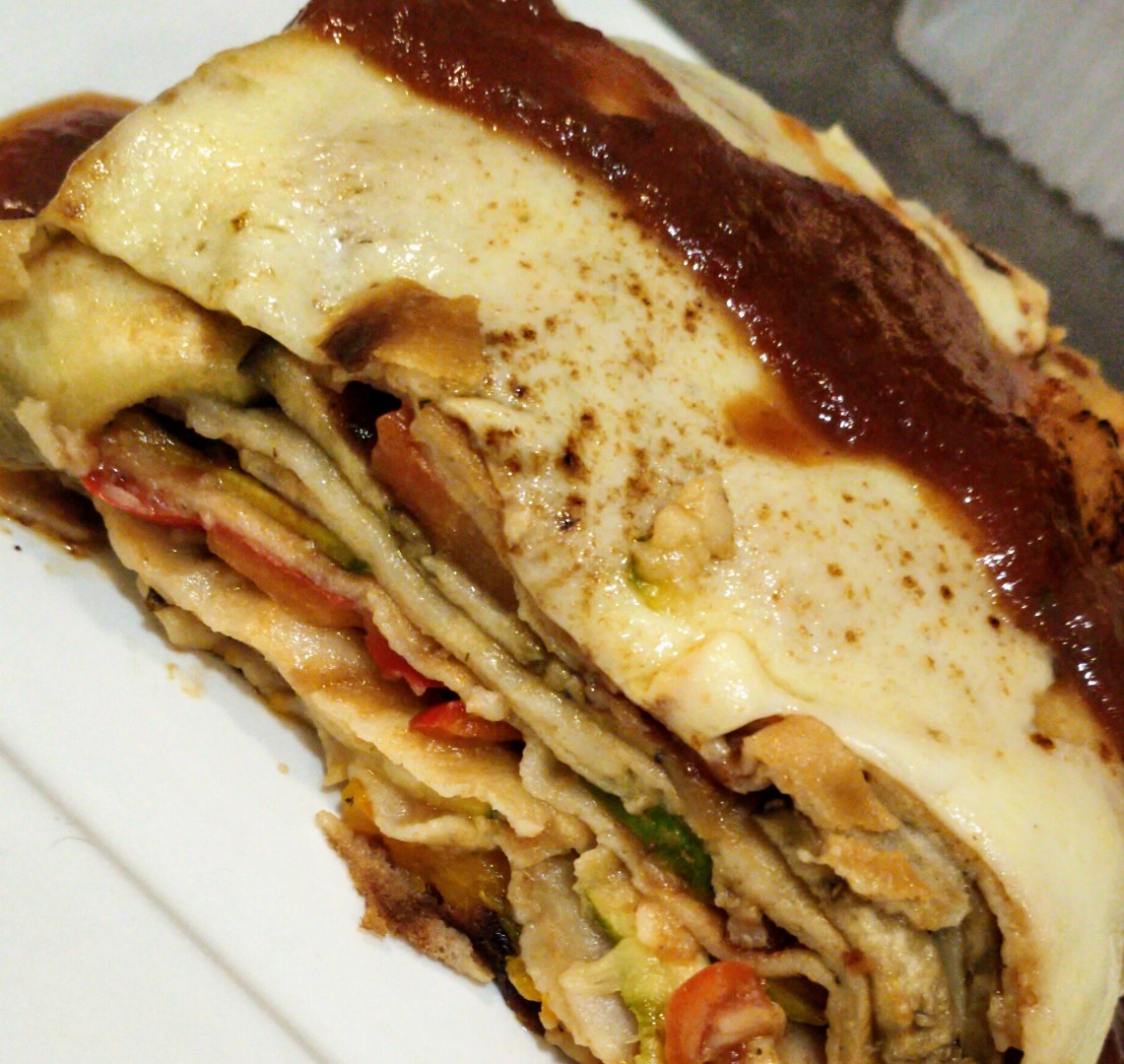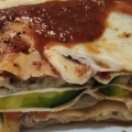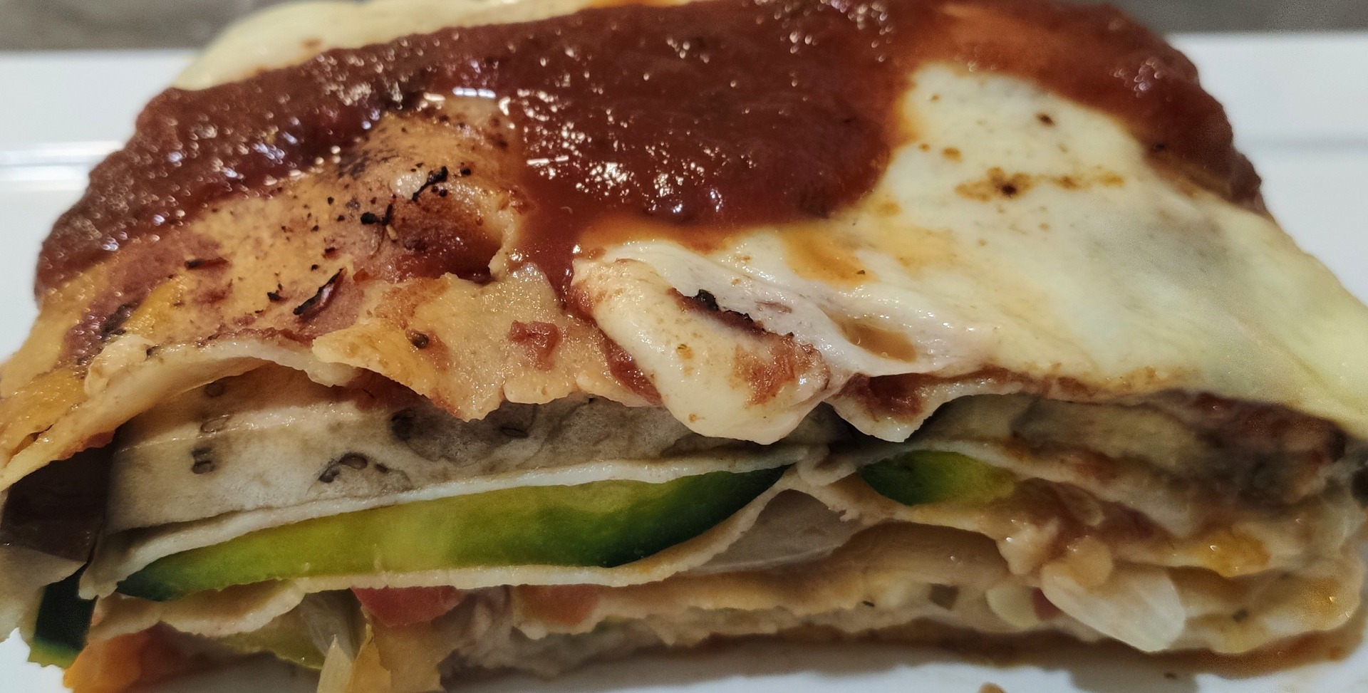 Lasagna de vegetales grillados y muzarella con salsa de tomate