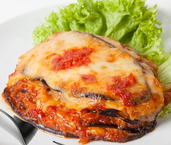 berenjenas, queso muzzarella, salsa filetto, queso parmesano